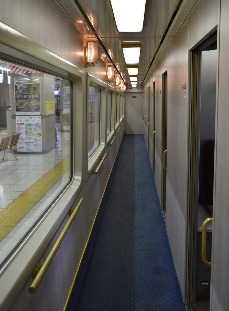ボクが日本に来て初めての旅行。鬼怒川温泉というところへ行く。ドイツでは個室のある特急列車は珍しくないけれども日本には高級リゾート列車以外にはあまりなく、東武鉄道のスペーシアに個室がある。