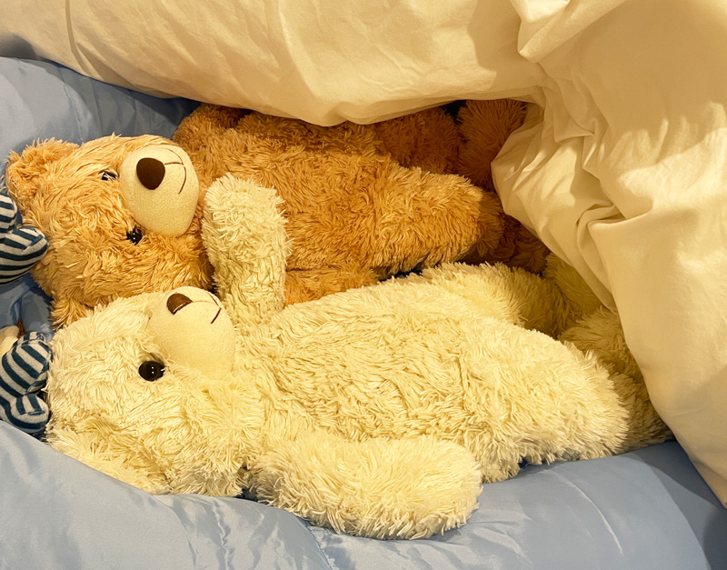 久しぶりに綺麗になった 日常 X Facebook はてブ 2022.11.20 洗って干されるくまぽんとくまごろう 久しぶりに洗ってもらってきれいになった。しっかりと乾かしてもらおう。 岩盤浴 仕上げは布団乾燥機で岩盤浴。あったかくて生き返る〜。 すっかり綺麗になったボク すっかり綺麗になってゴキゲン。 エプロンは新調することにしたのでしばらくは野良クマだけど、もともとリボンしかしていなかったから懐かしい気持ちだ。