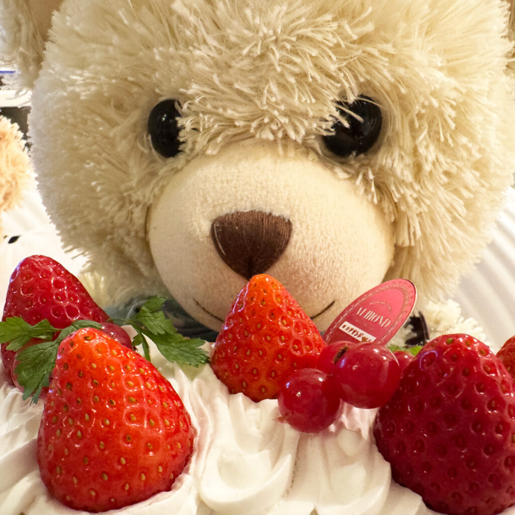 EIN FROHES NEUES JAHR 日常 X Facebook はてブ 2025.01.01 「EIN FROHES NEUES JAHR」ドイツ語はもう忘れちゃったけれど、新年あけましておめでとうございます。日本では元旦を新年のはじめの日としてお祝いする、おめでたい紅白ということで前に食べたショートケーキ、じゃなくてアマンドのナポレオンパイでお祝い。 ベストフレンドのくまごろうも喜んでいた。 今年も幸せな年になるといいな。